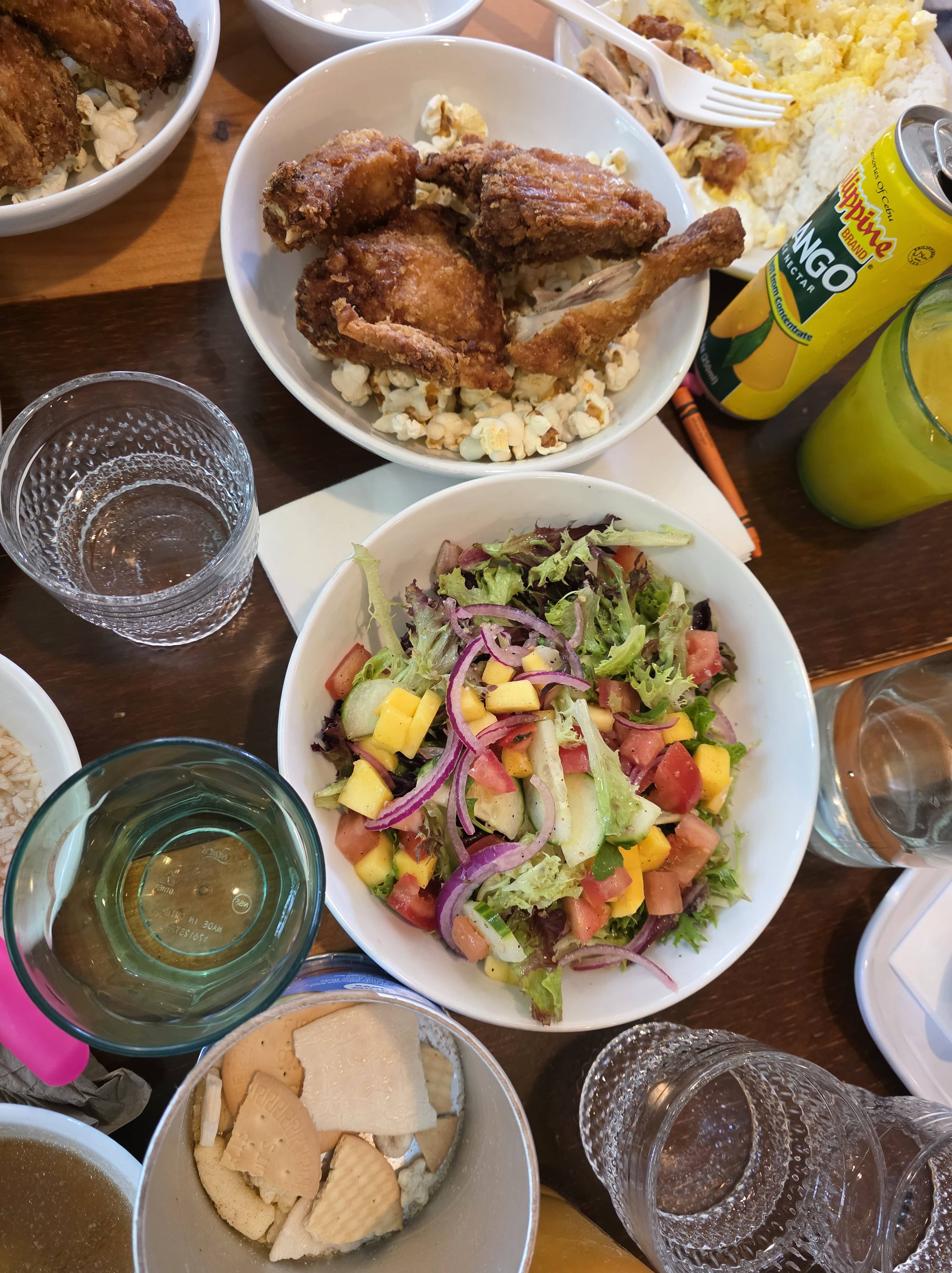 - Salad β Simple, refreshing, and a nice complement to the rich fried chicken.